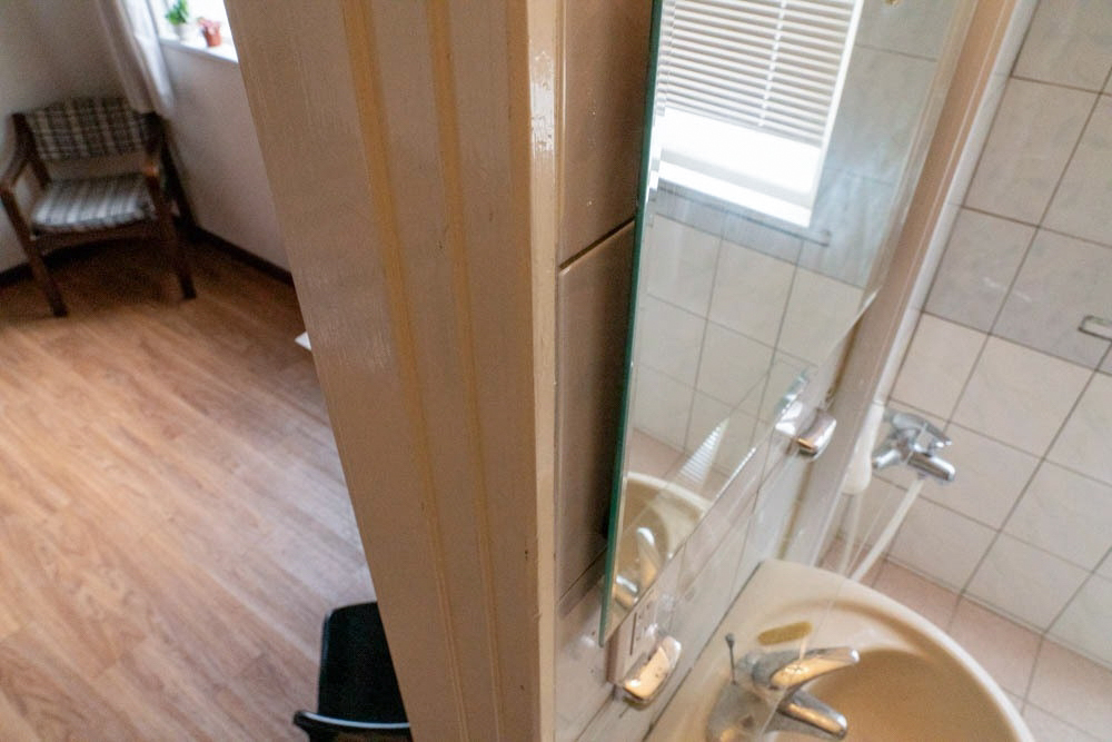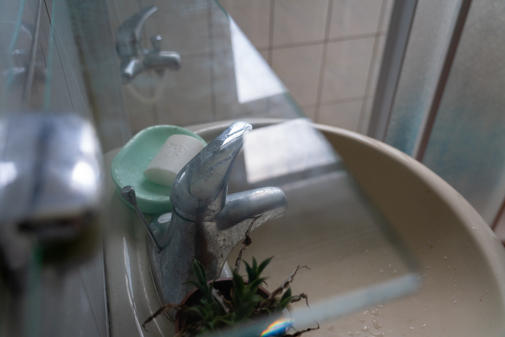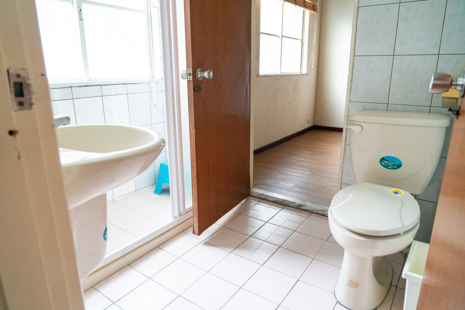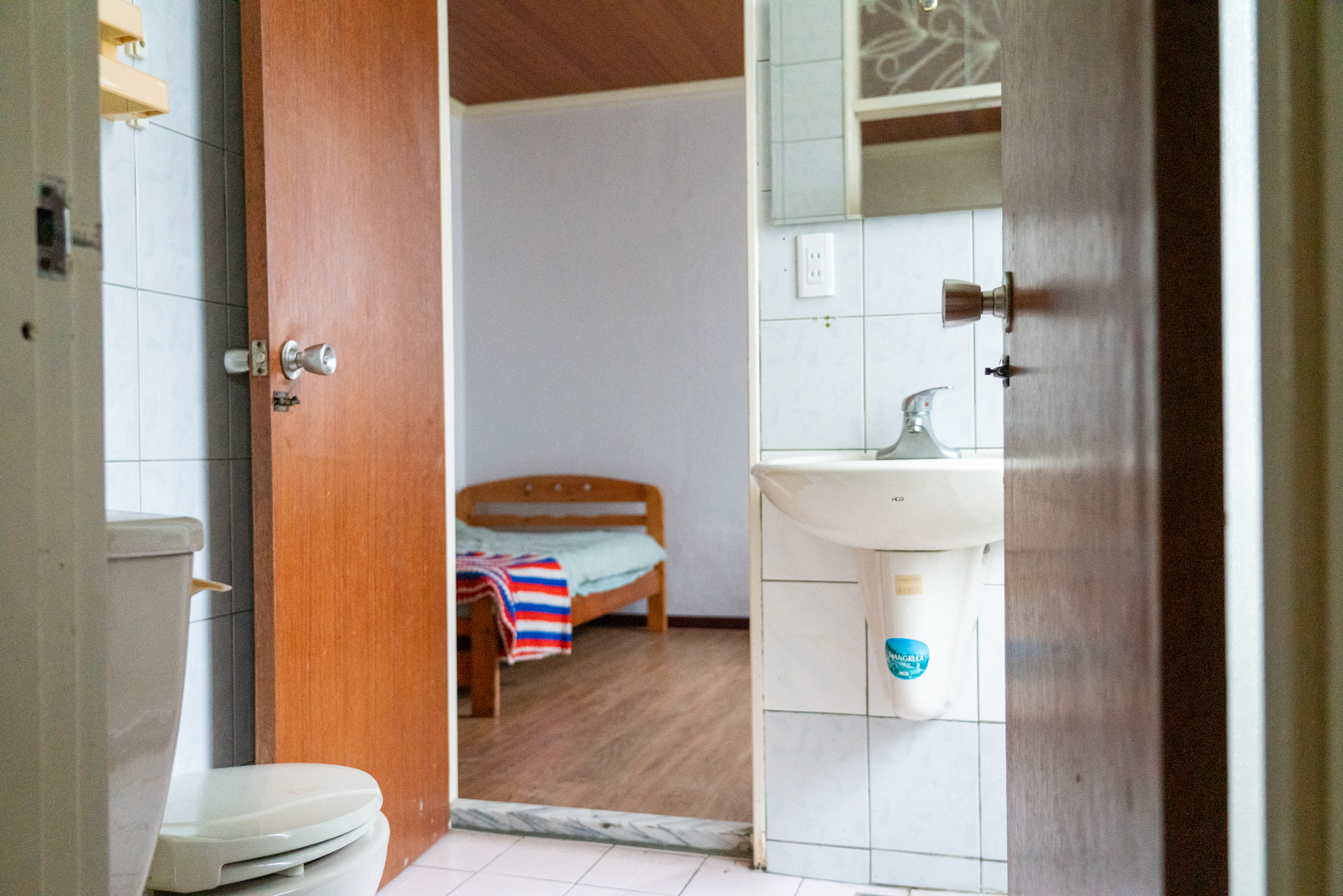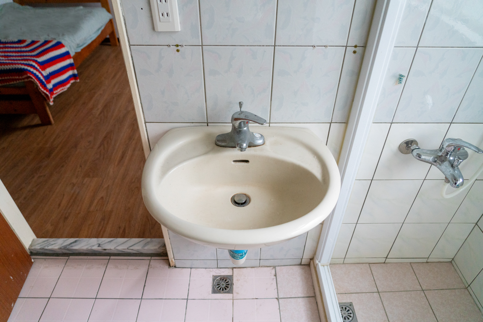 兩間客房中間有一個衛浴連通,這間衛浴附有淋浴系統,可提供熱水可拍攝。