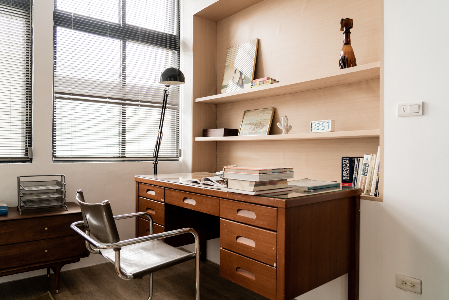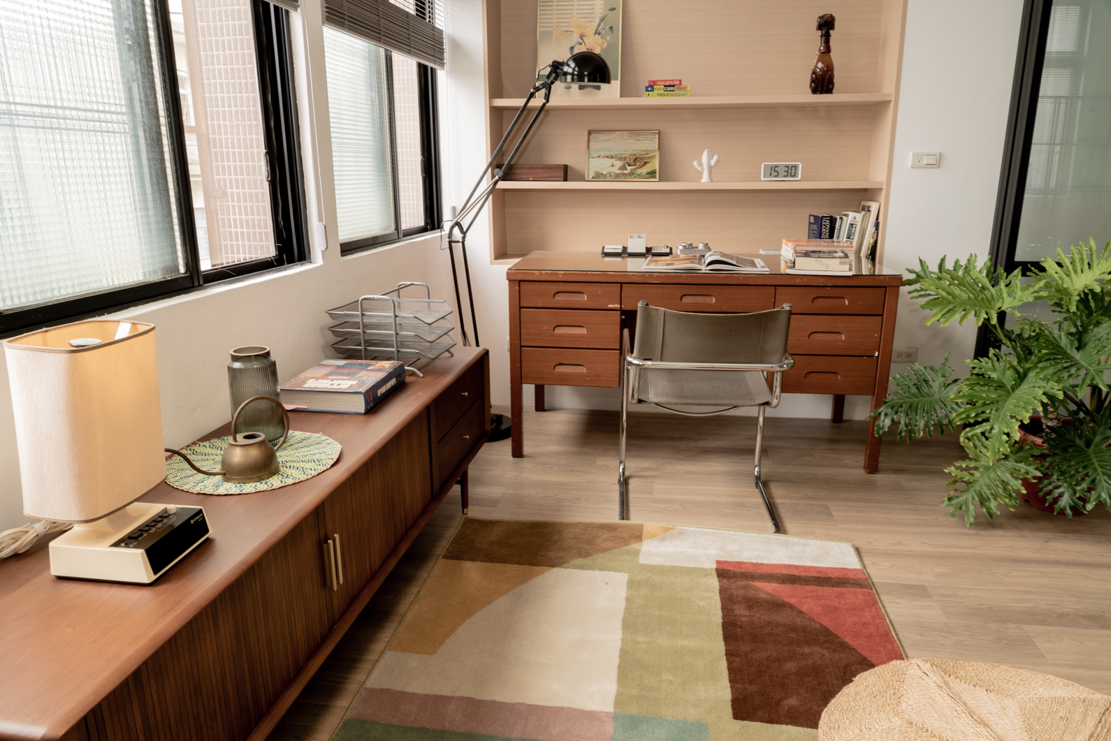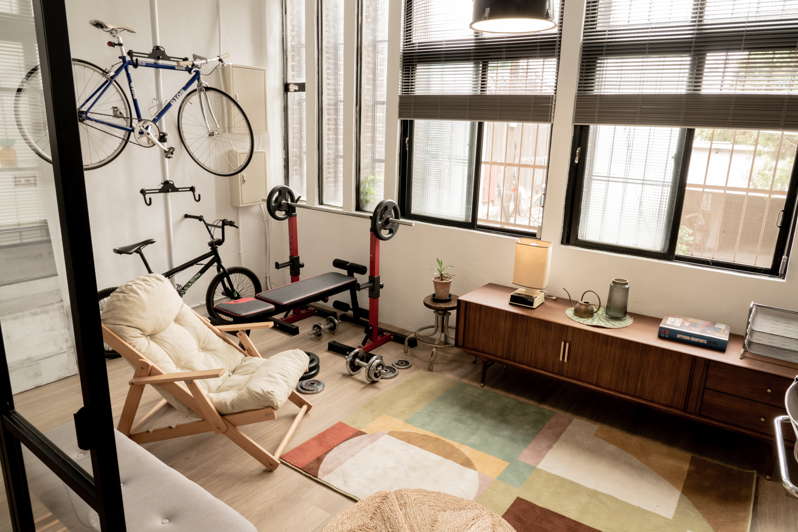 玻璃門另外隔出一個空間區域,可視需求改變陳設作為工作室、房間、種植綠植的裡陽台等空間。
