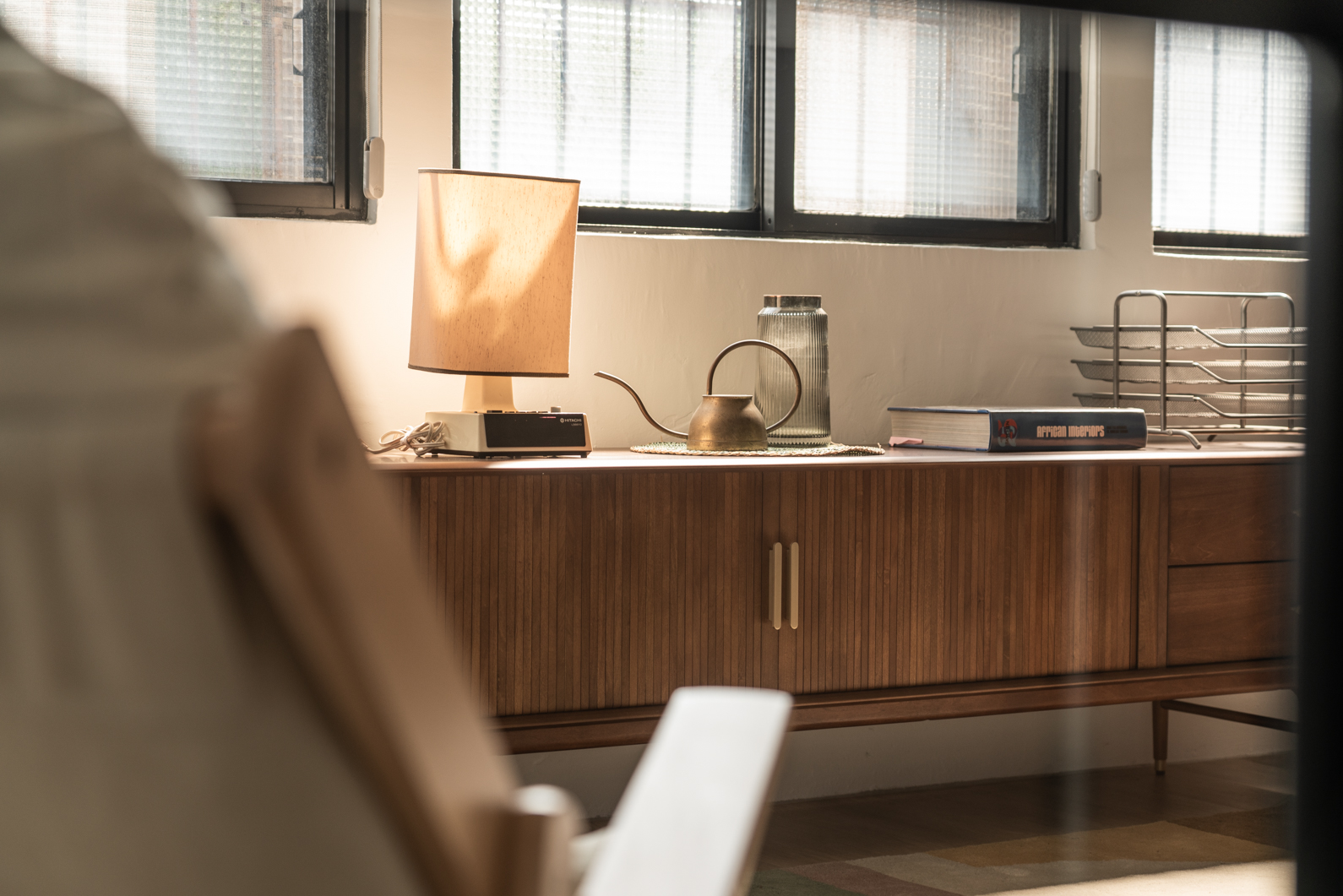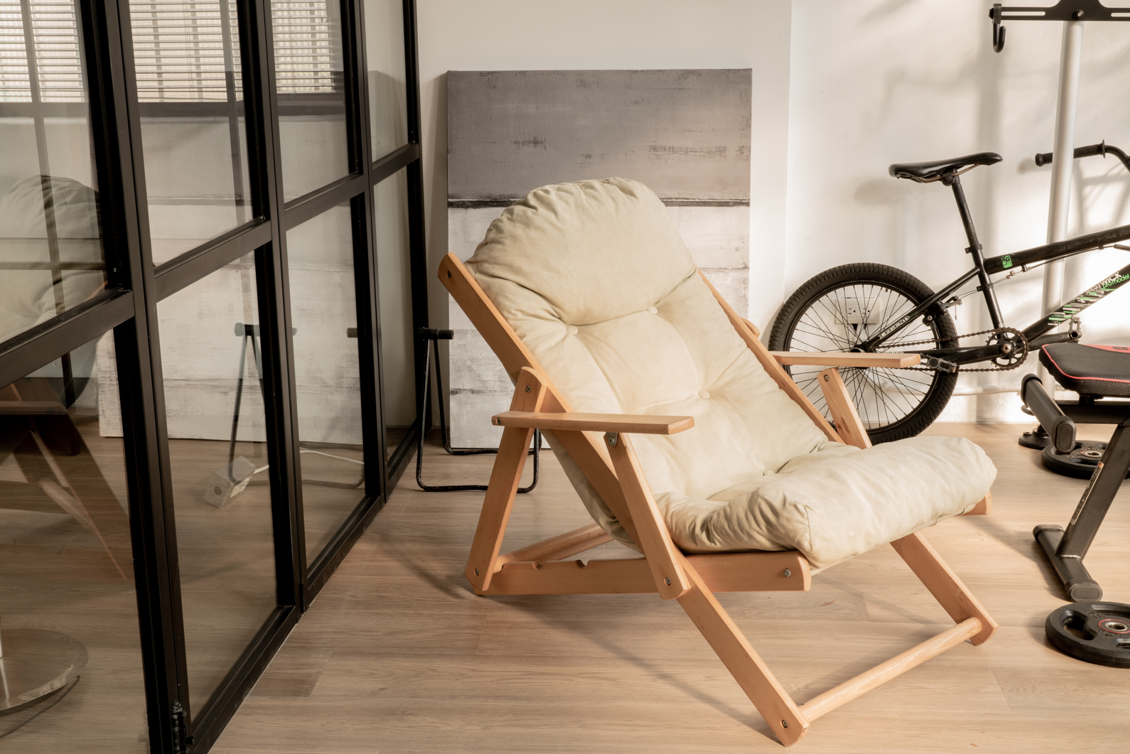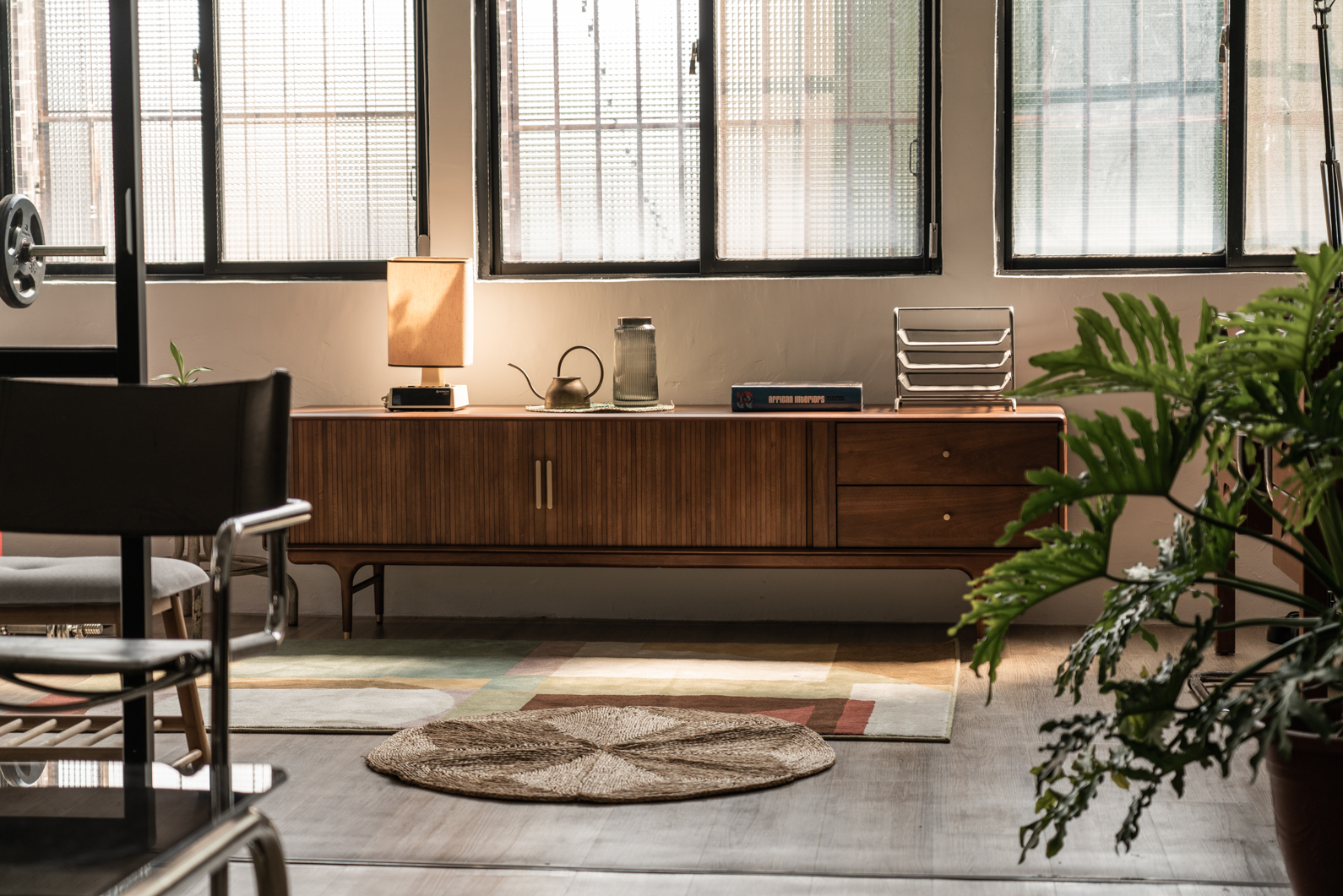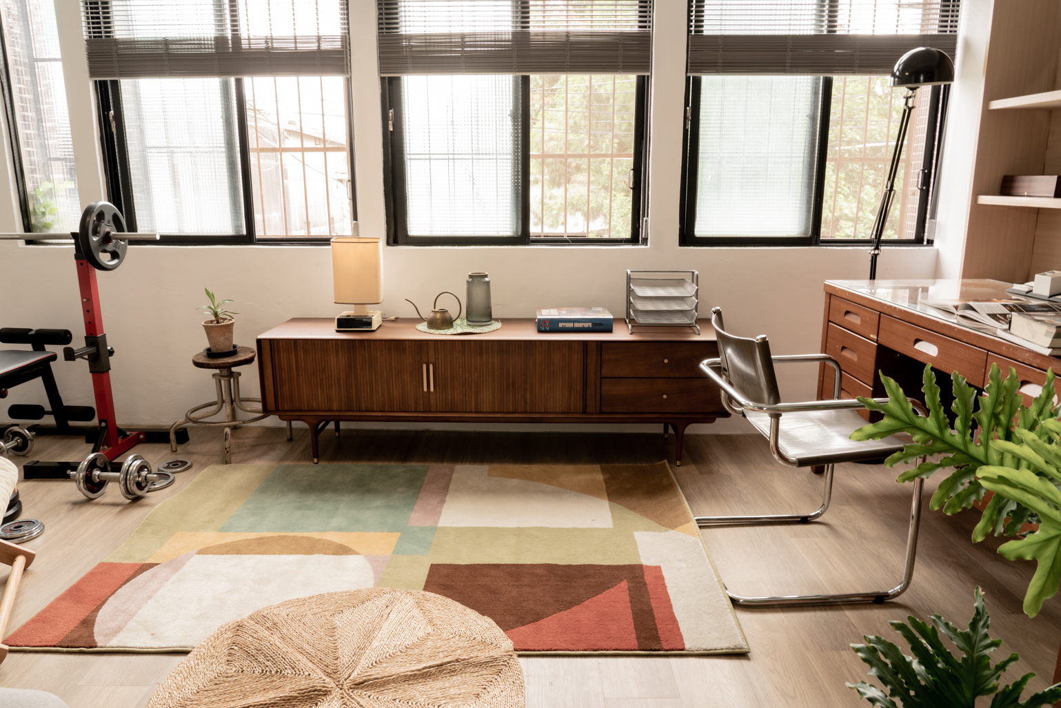 玻璃門另外隔出一個空間區域,可視需求改變陳設作為工作室、房間、種植綠植的裡陽台等空間。
