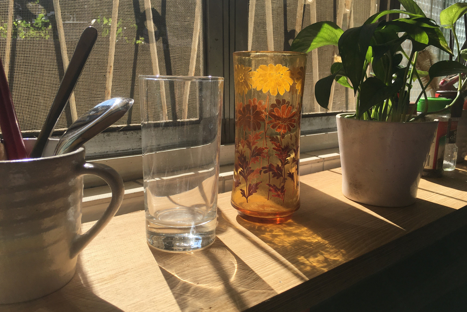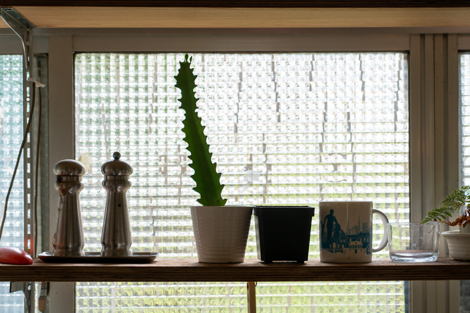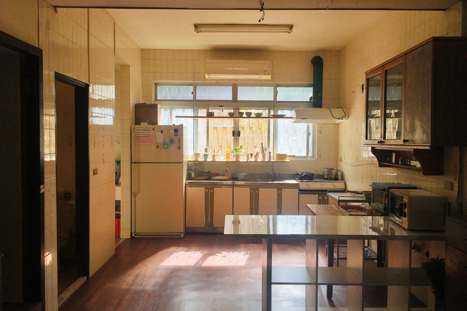 窗前擺放著各式鍋具及充滿滋味的調味料,記憶中在廚房裡忙碌的背影,是最熟悉的畫面,也是家的味道。
